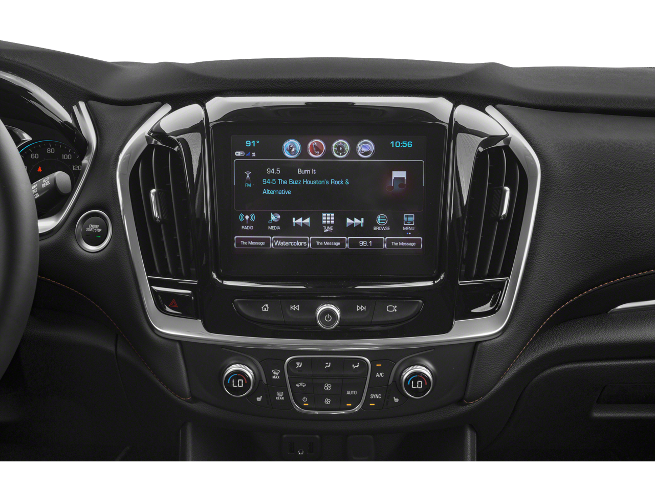 - Audio system, Chevrolet Infotainment System with 8" diagonal color touch-screen and AM/FM stereo, includes Bluetooth® streaming audio for music and most phones; featuring Android Auto and Apple CarPlay capability for compatible phones