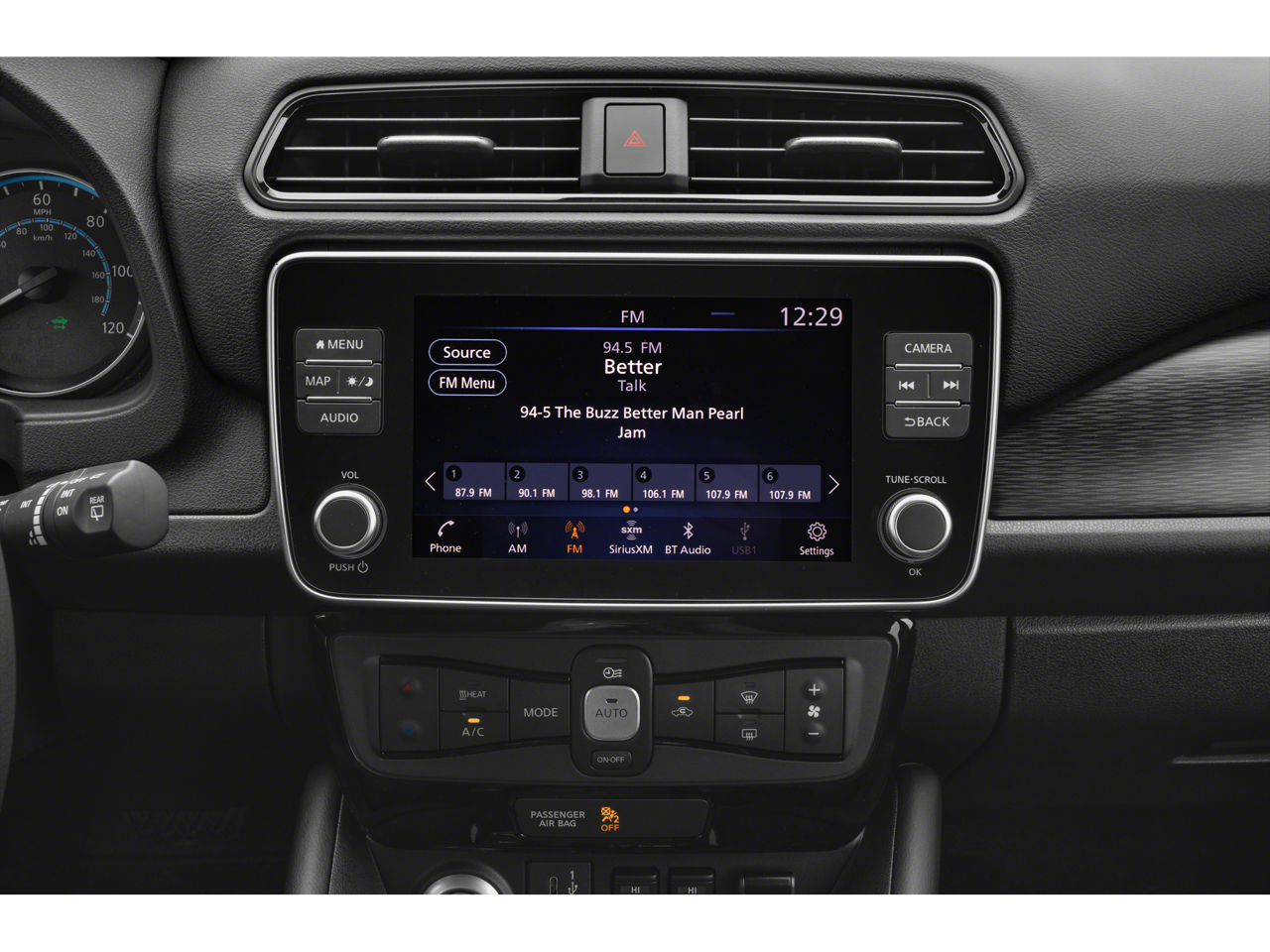 • Radio: NissanConnect EV w/Navigation/SiriusXM -inc: 8" color display w/multi-touch control, Nissan door to door navigation w/3D building graphics and satellite imagery, connected navigation features including online POI search, online premium traffic information, Over-the-Air (OTA) updates for head unit firmware and navigation map software via a Wi-Fi WPA2 connection, Apple CarPlay, Android Auto, HD Radio technology, SiriusXM radio w/advanced audio features, SiriusXM Traffic, SiriusXM Travel Link (weather, movie listings, stock info, sports and parking), USB connection port for iPod interface and other compatible devices, Bluetooth® hands-free phone system, streaming audio via Bluetooth®, hands-free text messaging assistant and 6 speakers